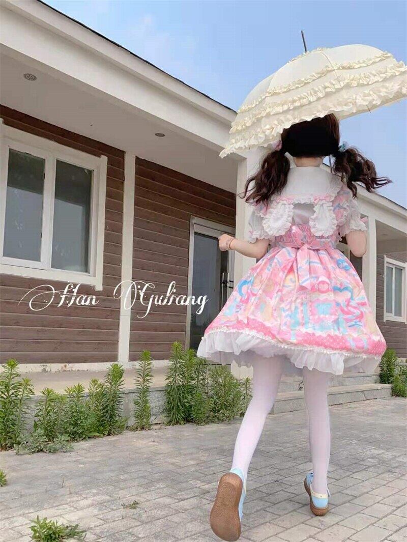 送料無料୨♥୧ スプリングオータムレディースドレス ブルーパターンリボンノースリーブフリル ピンク ラッフル 大人ガーリー スウィート キュート カジュアル 春物 秋物 AOS72933088846