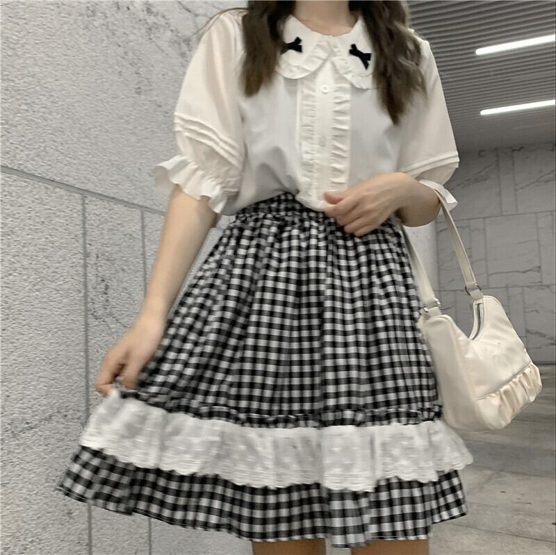 送料無料୨♥୧ サマーレディーススタイルホワイトカラーリボンレースフリルスカート セット ラッフル 夏物 AOS38985378184