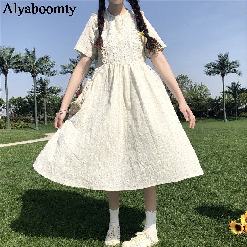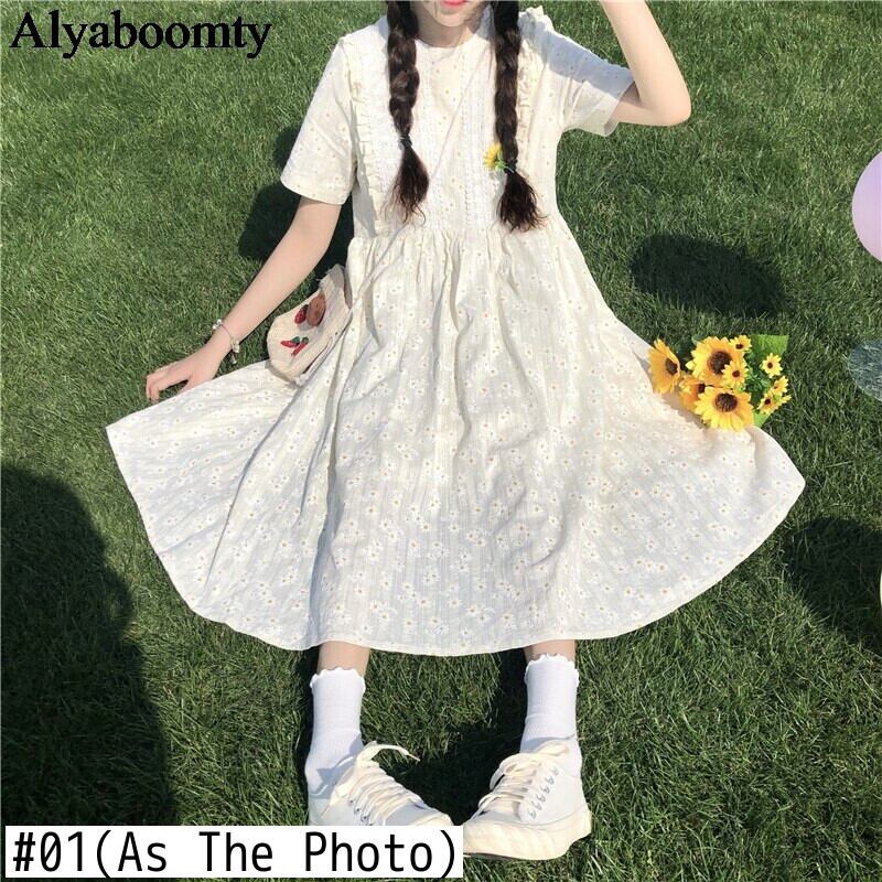 送料無料୨♥୧ サマーレディースミディドレス フローラルプリントルーズ半袖スリーブ ショート ハーフスリーブ 大人ガーリー スウィート キュート カジュアル 夏物 花柄 Oネック AOS34148809443