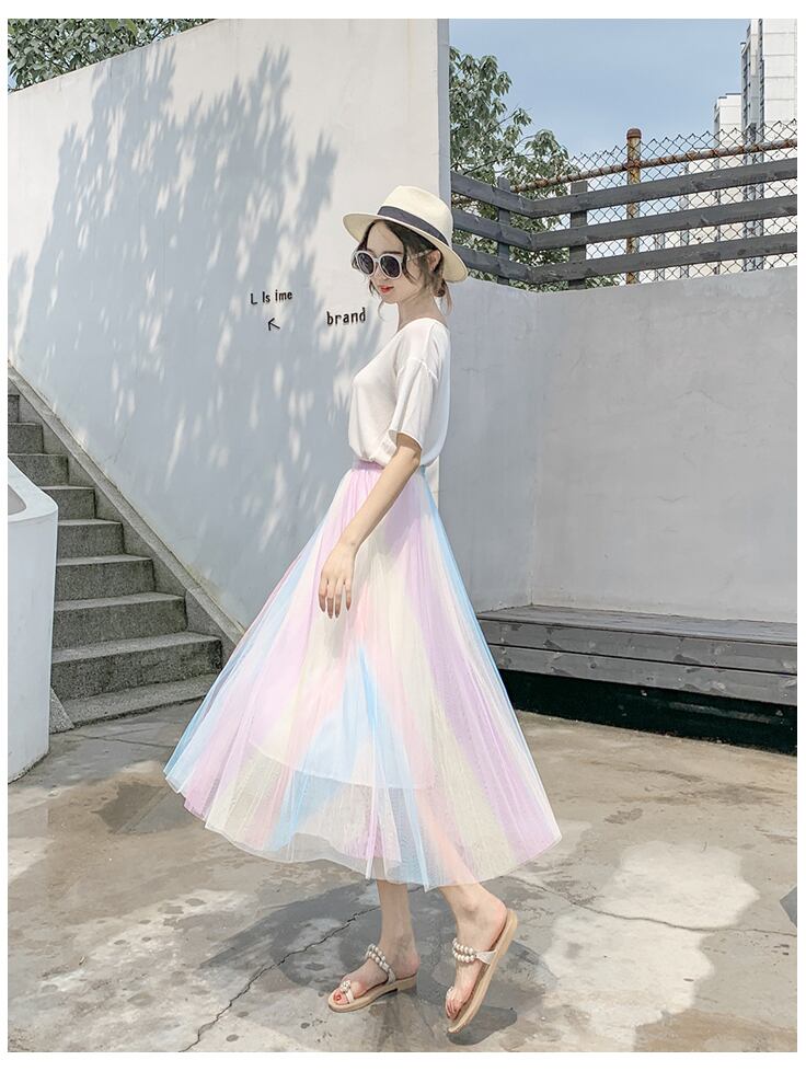 送料無料୨♥୧ サマーオータムレディースロングスカート ウェストメッシュプリーツ 大人ガーリー スウィート キュート カジュアル 夏物 秋物 AOS51248396743