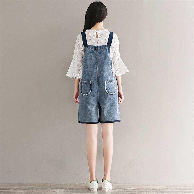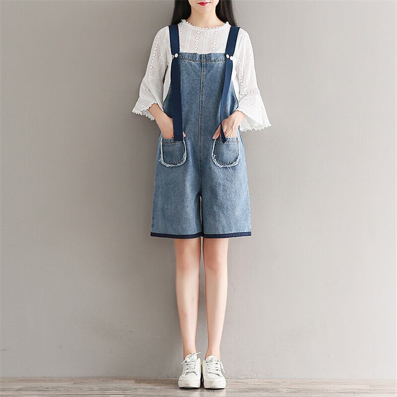 送料無料୨♥୧ サマーレディースオーバーオール ルーズブルーワイドレッグショートジャンプスーツ オールインワン 大人ガーリー スウィート キュート カジュアル 夏物 ワイドパンツ AOS74794021811
