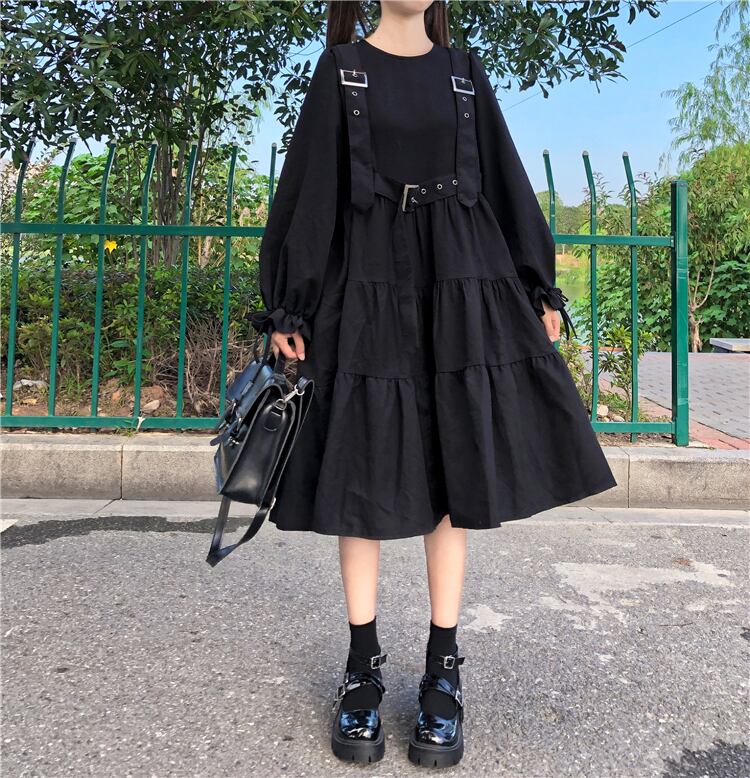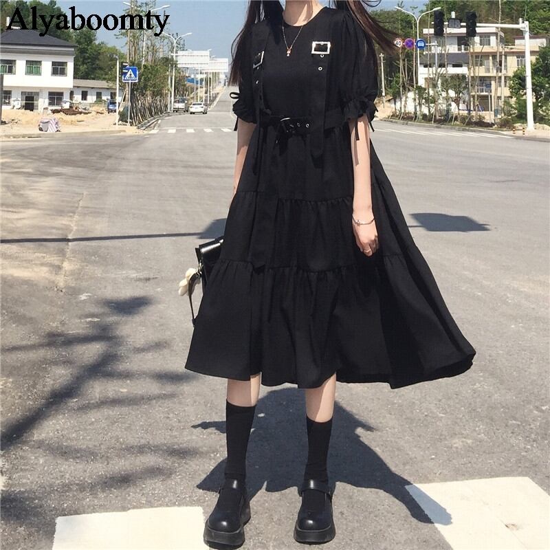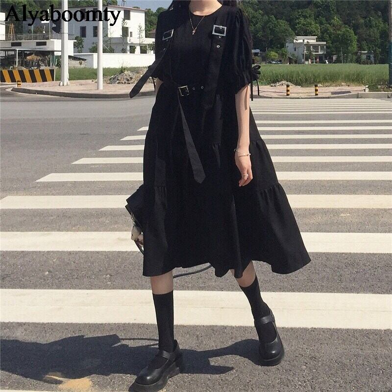 送料無料୨♥୧ サマーレディースストリートウェアロングドレス スタイルベルト 半袖スリーブフリルミディ ショート ハーフスリーブ ラッフル かわいい 夏物 ハーネス AOS19974135476