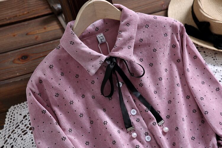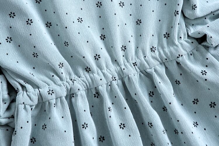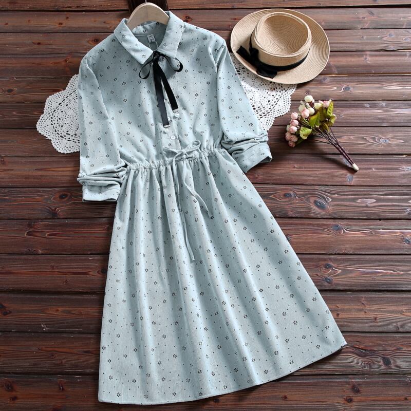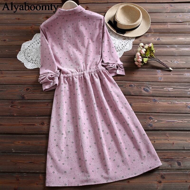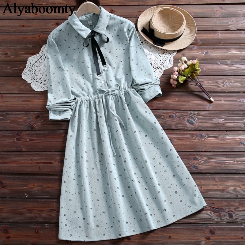 送料無料୨♥୧ オータムスプリングドレス カラーフローラルプリント長袖スリーブコーデュロイ ロング 大人ガーリー スウィート キュート カジュアル 春物 秋物 花柄 AOS17309473104