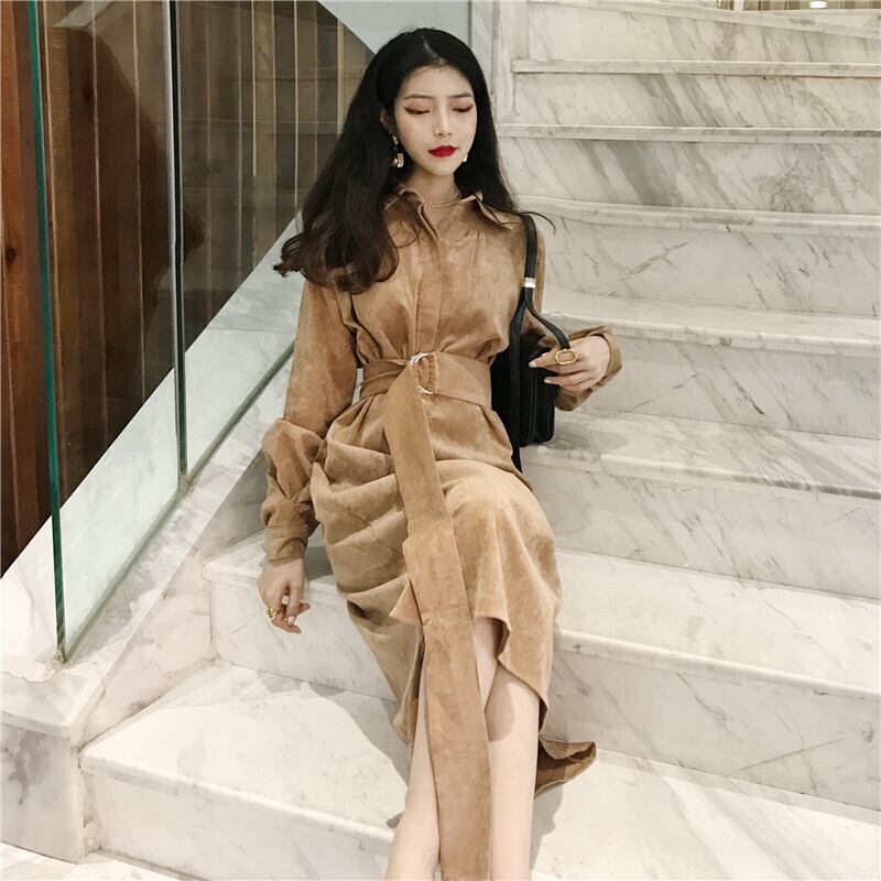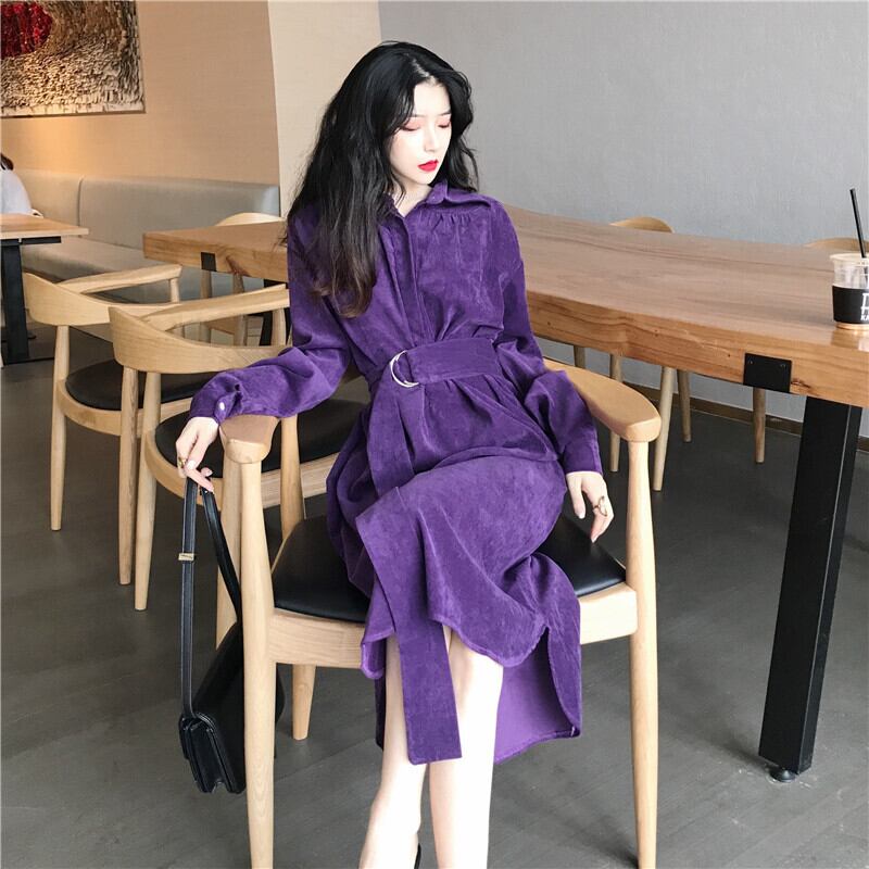 送料無料୨♥୧ オータムウィンターレディースロングドレス カラーカーキヴィンテージコーデュロイ 秋物 冬物 パープル ビンテージ AOS52442648478