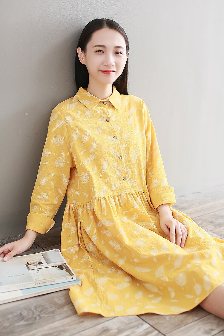 送料無料୨♥୧ スプリングオータムレディースドレス カラープリントスリーブドレス ワンピース コットン 大人ガーリー スウィート キュート カジュアル 春物 秋物 AOS52999052983