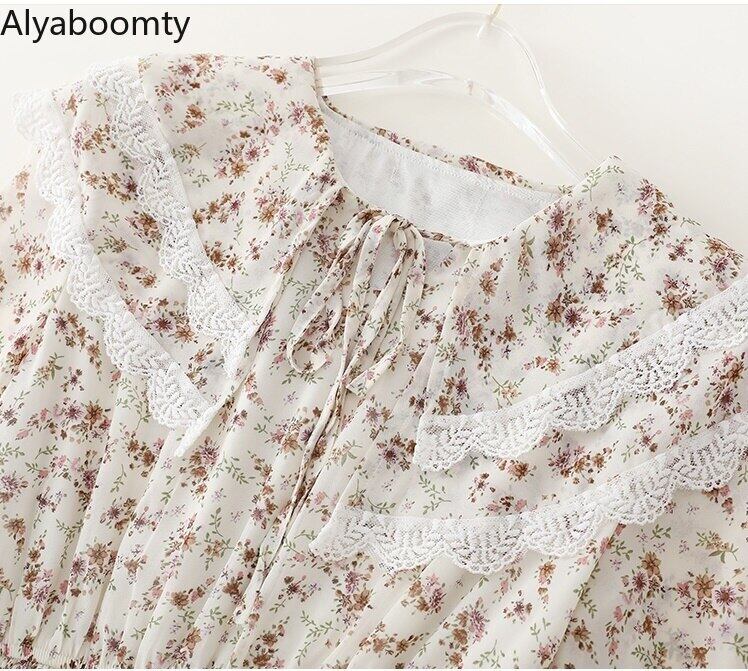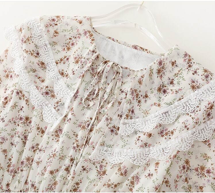 送料無料୨♥୧ スプリングオータムレディースミディドレス レースカラーフローラルシフォンフリル レッド ラッフル 大人ガーリー スウィート キュート カジュアル 春物 秋物 花柄 AOS80569929162