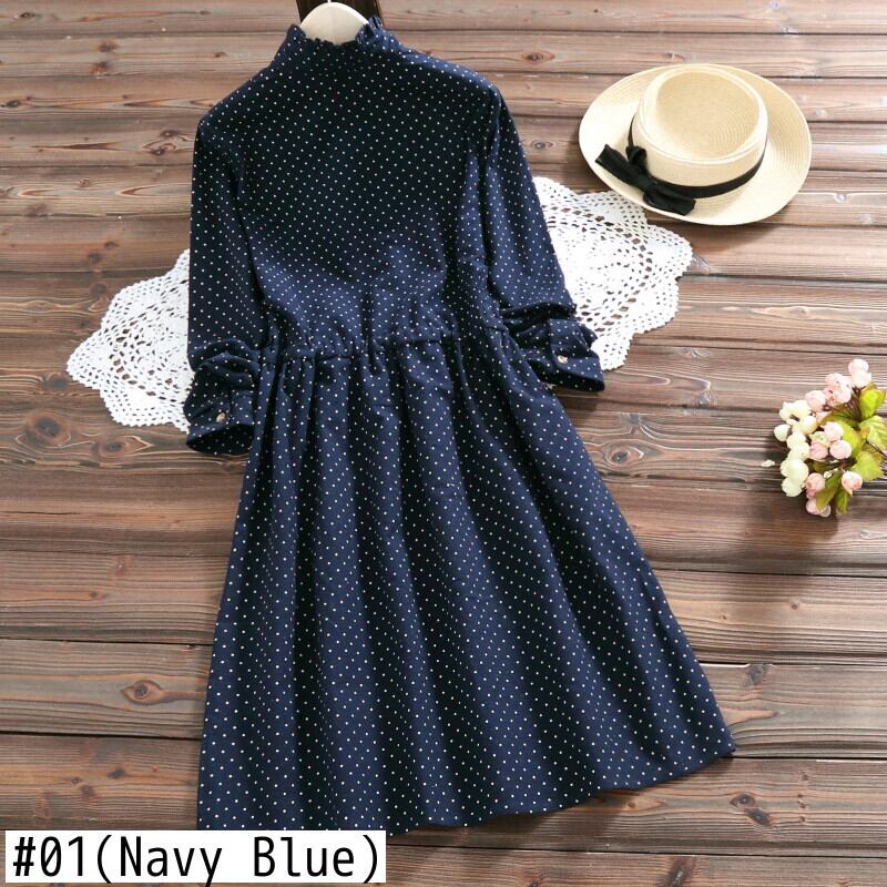 送料無料୨♥୧ スプリングオータム水玉グレーネイビーブルーグリーンドレス ロング 春物 秋物 AOS10949480775