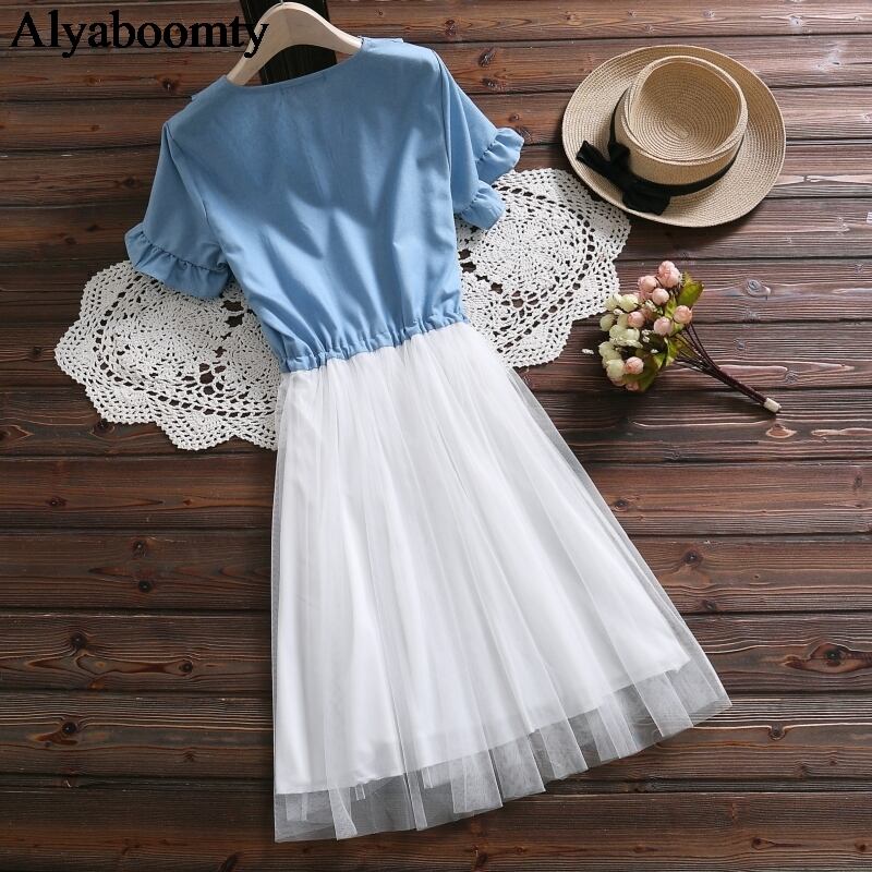 送料無料୨♥୧ スタイルサマーレディースドレス カラー刺繍ブルーメッシュ 大人ガーリー スウィート キュート カジュアル 夏物 AOS78990792425