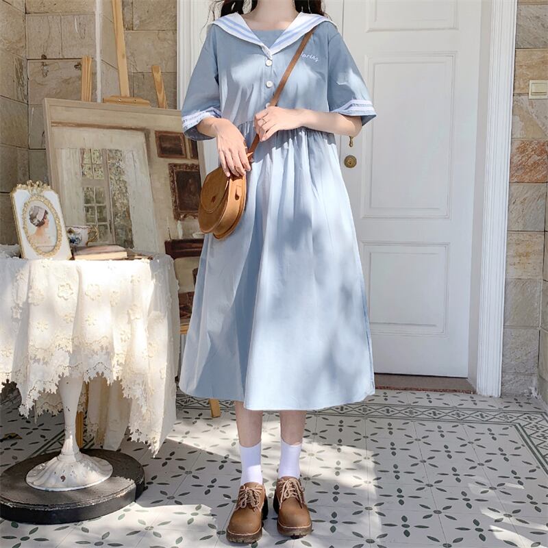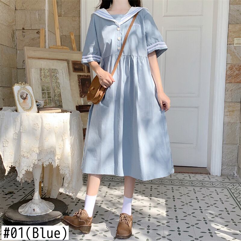 送料無料୨♥୧ サマーレディースドレス カラーブルールーズ半袖スリーブスタイル ショート ピンク ハーフスリーブ 大人ガーリー スウィート キュート カジュアル かわいい 夏物 AOS82547697683