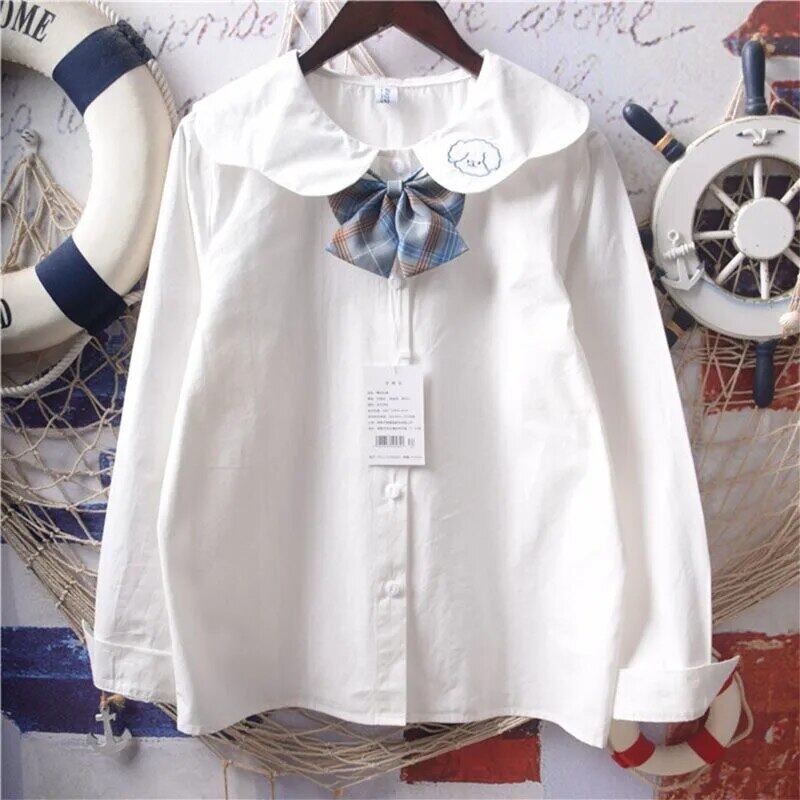 送料無料୨♥୧ スプリングオータムレディースホワイトシャツ カラー刺繍ルーズブラウス 長袖スリーブリボン ロング 大人ガーリー スウィート キュート カジュアル 春物 秋物 AOS17582197733