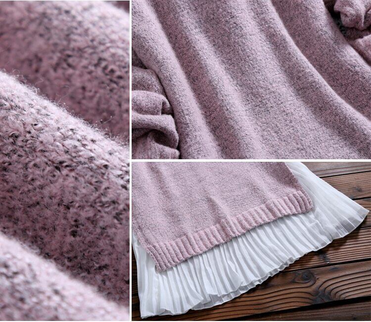 送料無料୨♥୧ スプリングオータムレディースミディドレス ラウンドネックニットシフォンパッチワークセーター 長袖スリーブドレス ワンピース ロング 春物 秋物 Oネック AOS49282319548