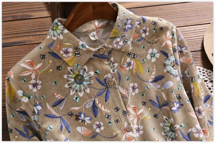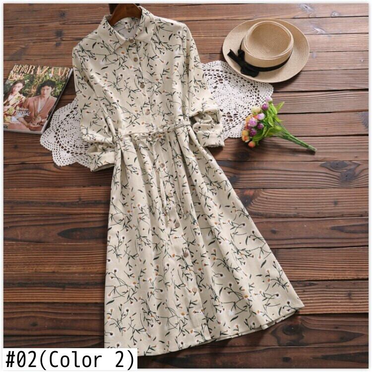 送料無料୨♥୧ オータムスプリングレディースロングシャツ ドレス カラーフローラルプリントコーデュロイミディ 大人ガーリー スウィート キュート カジュアル 春物 秋物 花柄 AOS37879180012