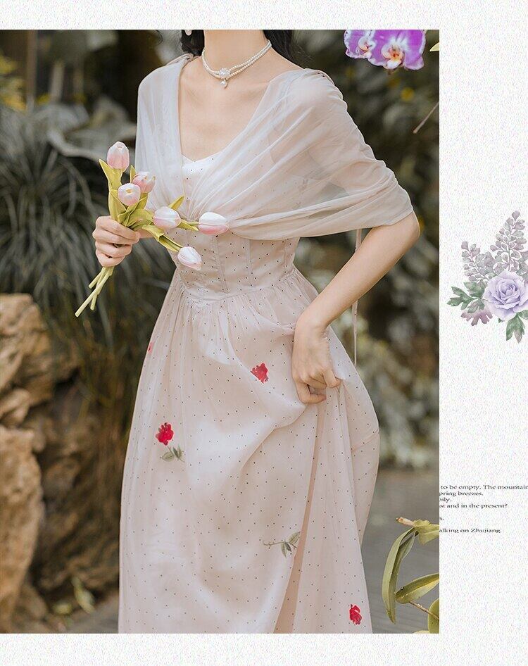 送料無料୨♥୧ サマーレディース妖精ロングパーティードレス Vネックフローラルプリントメッシュスタイリッシュロマンチックバットウィングスリーブシック AOS57121130001
