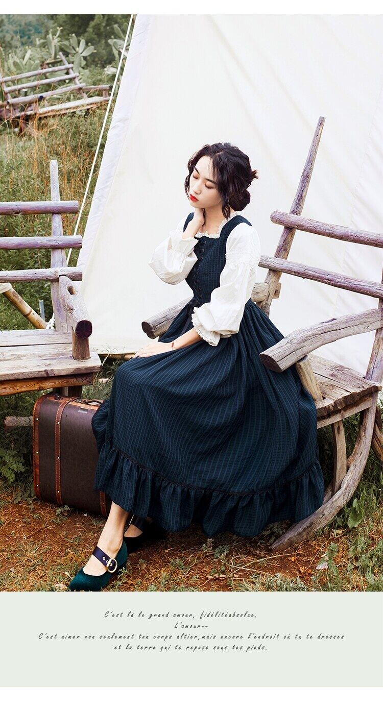 送料無料୨♥୧ オータムスプリングレディースロングドレス カラーパッチワークストライプバンドスリーブフリル ラッフル 春物 秋物 スクウェア AOS51700208567