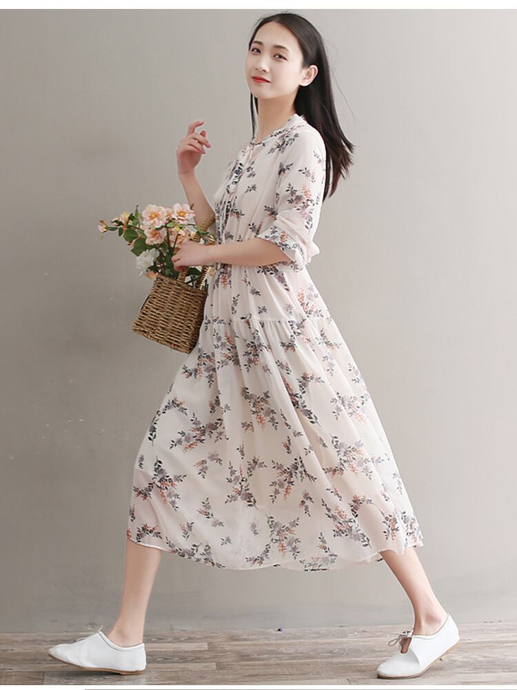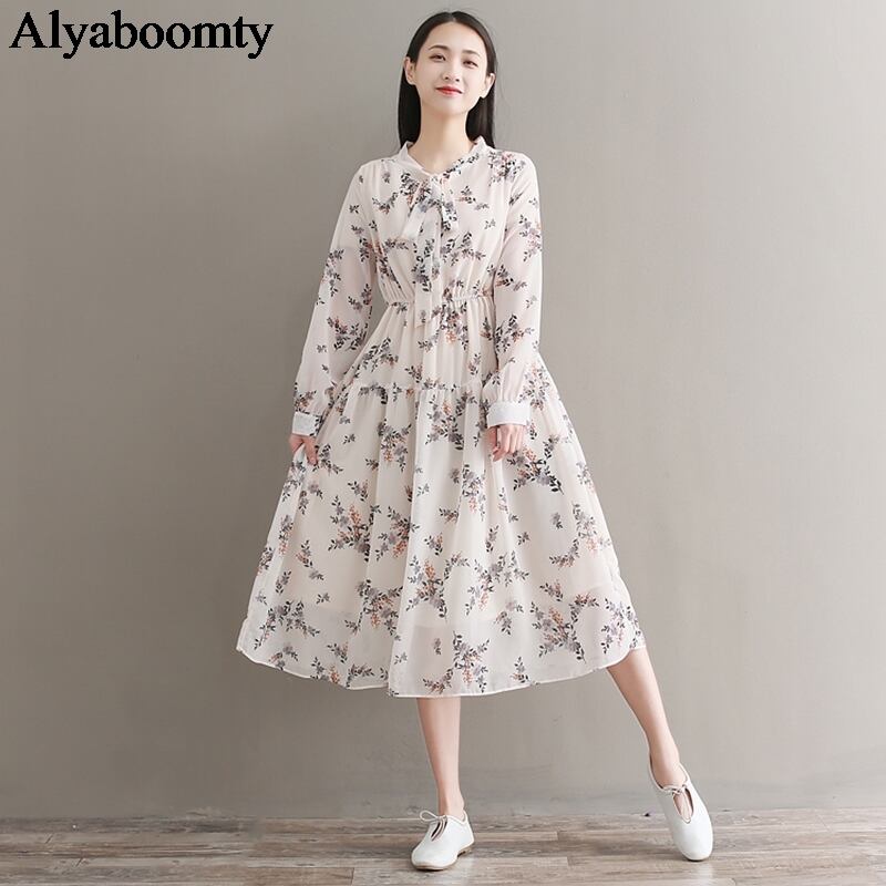 送料無料୨♥୧ オータムレディースロングドレス リボンカラーフローラルプリントウェストシフォンドレス ワンピース 大人ガーリー スウィート キュート カジュアル 秋物 花柄 AOS3178535288