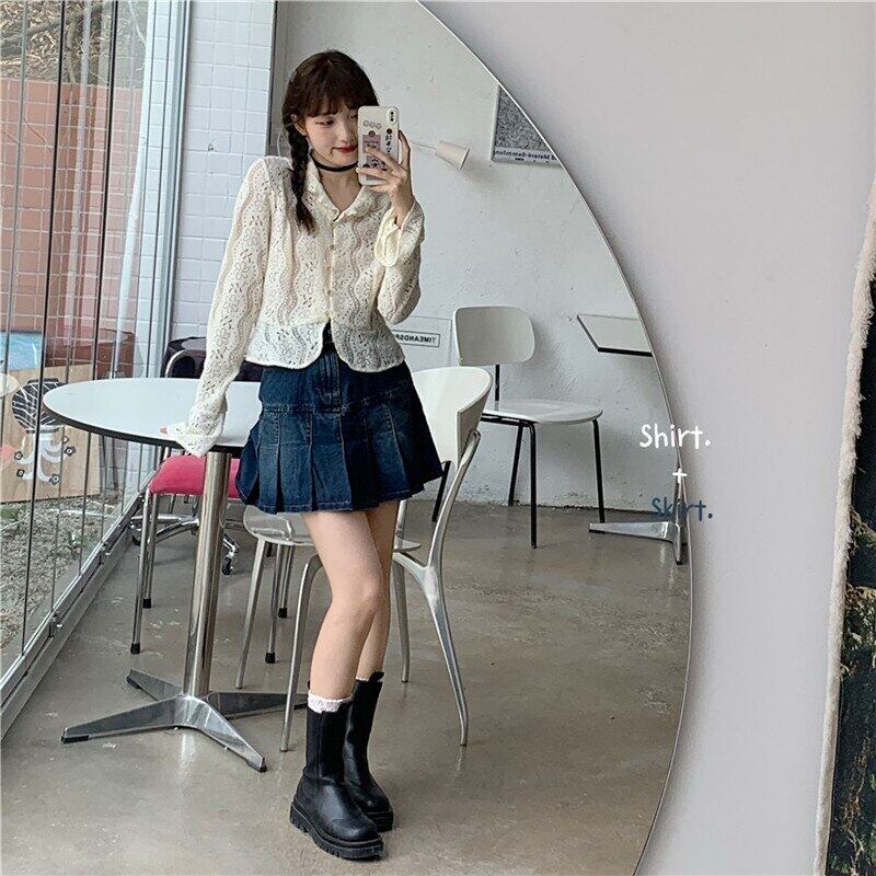 送料無料୨♥୧ スプリングオータムレディースセット フローラルレースウェストミニプリーツスカート 大人ガーリー スウィート キュート カジュアル 春物 秋物 花柄 AOS98003355876