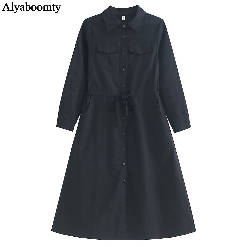 送料無料୨♥୧ オータムレディースブラックドレス ヴィンテージルーズフェミニーズロングシャツ コットン 大人ガーリー スウィート キュート カジュアル 秋物 ビンテージ AOS49940412048