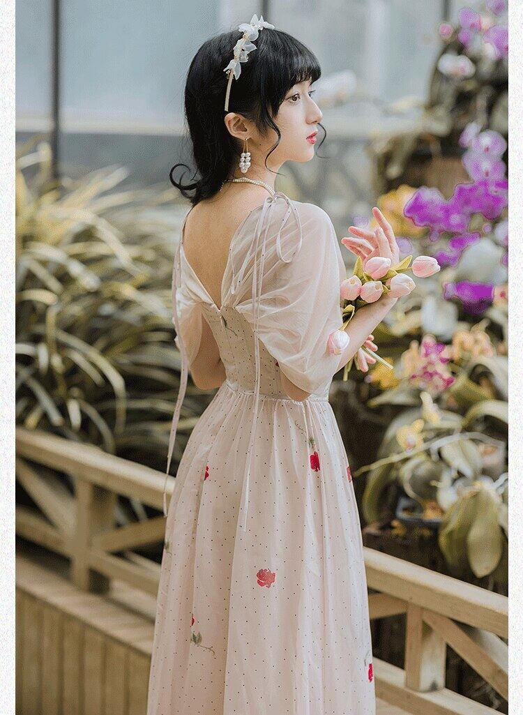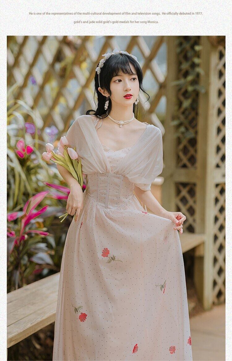 送料無料୨♥୧ サマーレディースロングドレス Vネックフローラルプリントメッシュスリーブ 夏物 花柄 AOS16520865542