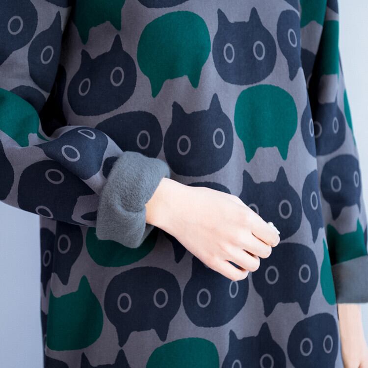 送料無料୨♥୧ オータムウィンターレディースミニドレス プリントルーズ長袖スリーブフードスタイル ロング 秋物 冬物 AOS5036025835