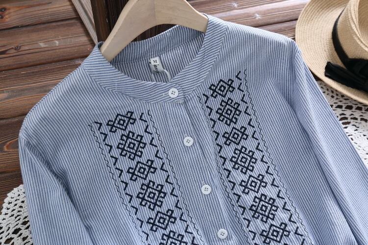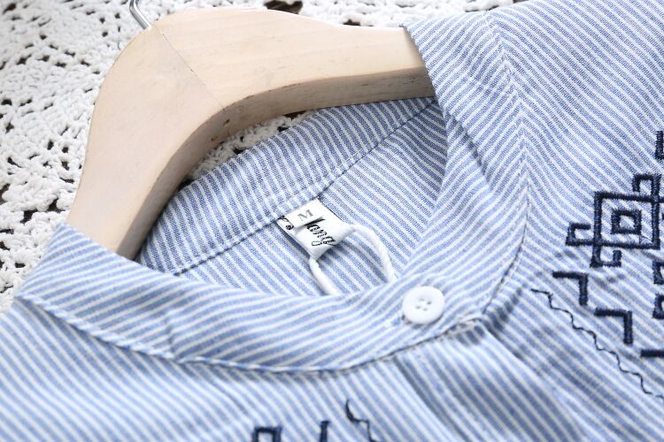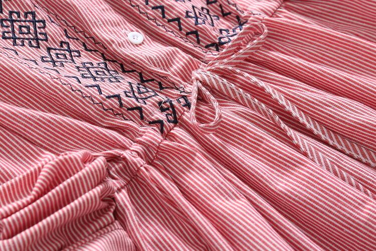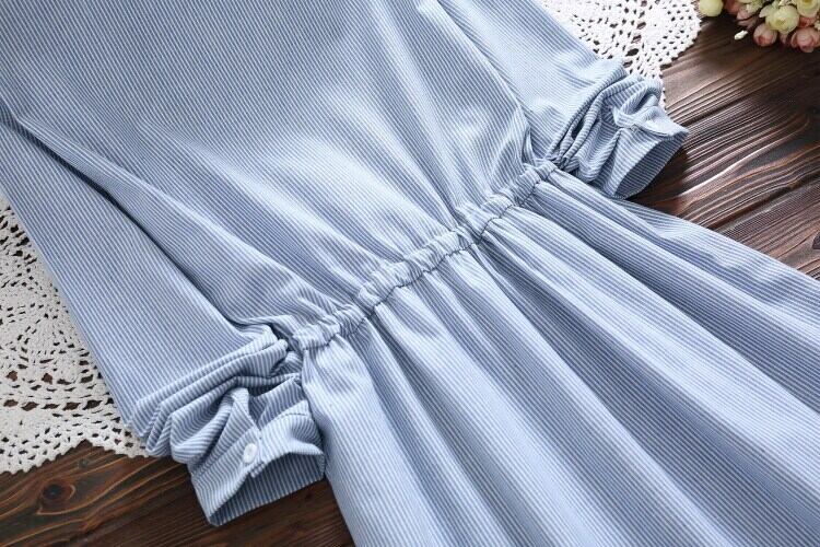 送料無料୨♥୧ スプリングオータムレディースヴィンテージドレス ブルーストライプ刺繍 ピンク コットン 大人ガーリー スウィート キュート カジュアル 春物 秋物 ビンテージ AOS204365979