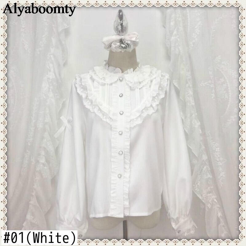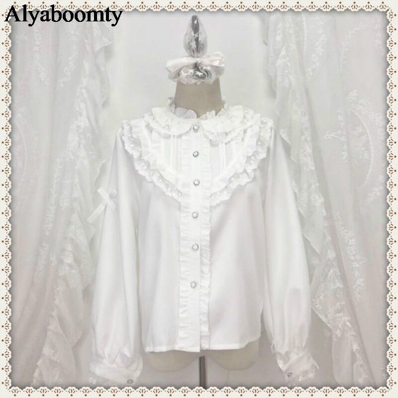 送料無料୨♥୧ スタイルオータムスプリングレディースホワイトシャツ スタンドカラーカラーフリルフェミニーズブラウス ラッフル 大人ガーリー スウィート キュート カジュアル 春物 秋物 AOS25976999047