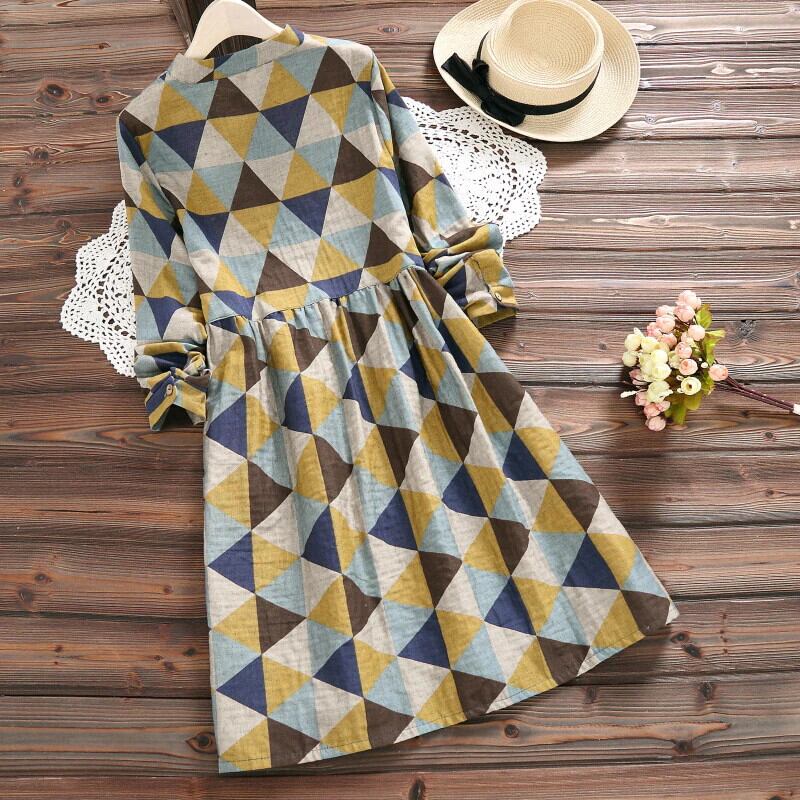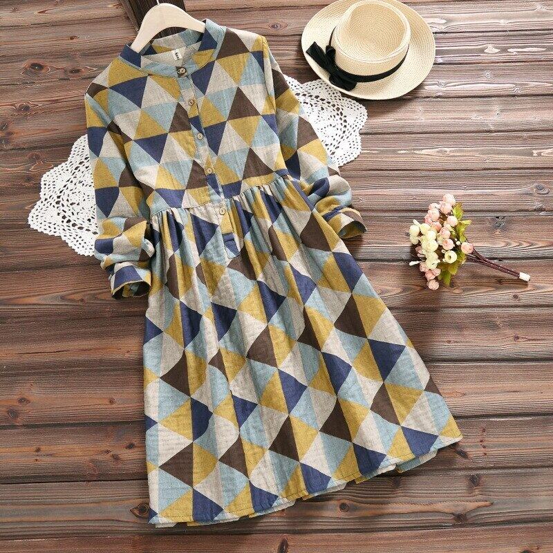 送料無料୨♥୧ オータムスプリングレディースヴィンテージドレス スタンドカラーカラープリントルーズフェミニーズ コットン 大人ガーリー スウィート キュート カジュアル 春物 秋物 ビンテージ AOS66290054140