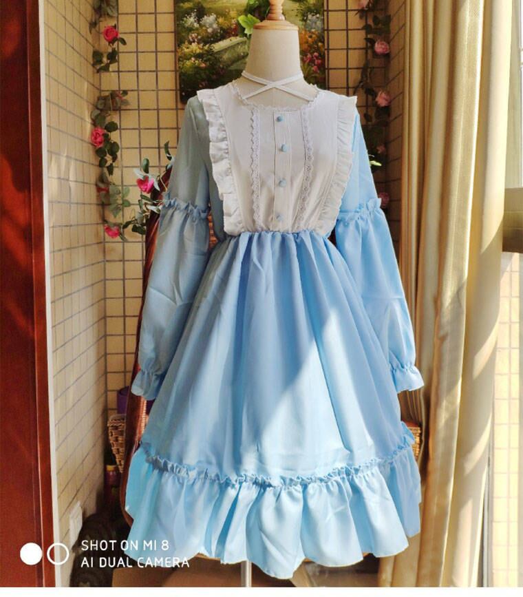 送料無料୨♥୧ スプリングレディースブラックブルードレス パッチワークフリルスタイル ラッフル 大人ガーリー スウィート キュート カジュアル 春物 AOS52764510772
