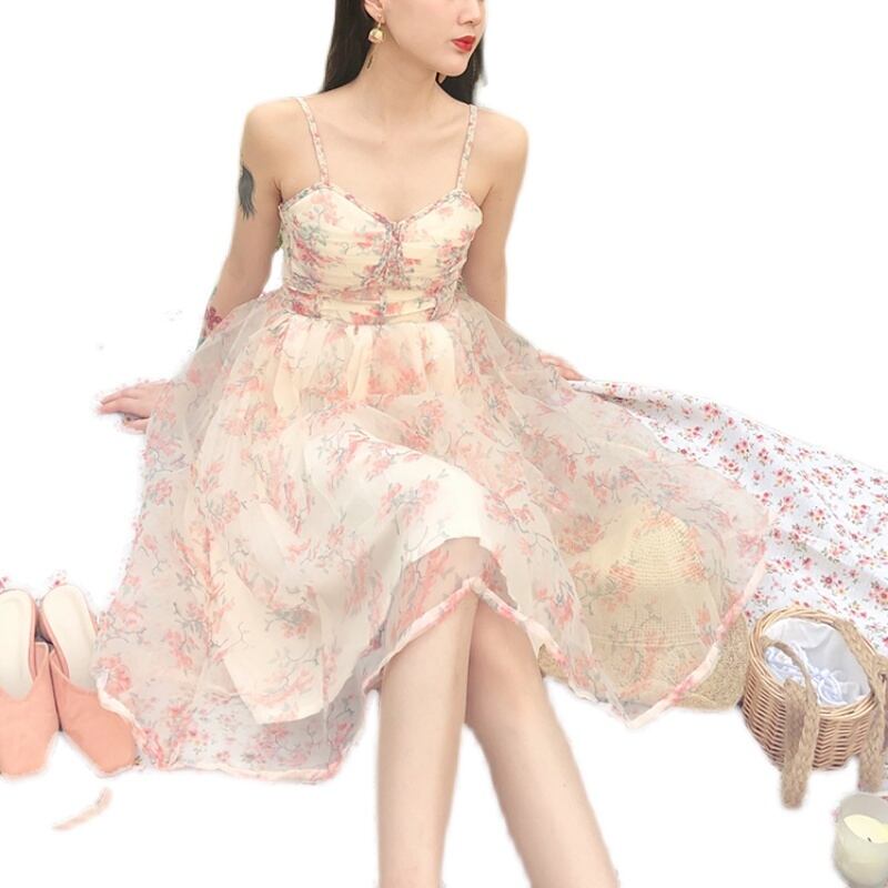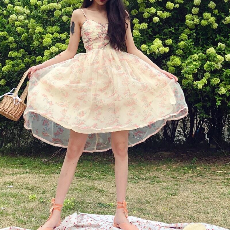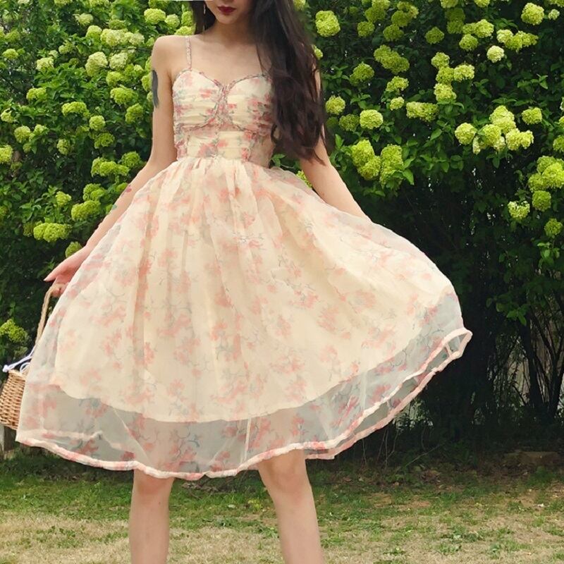 送料無料୨♥୧ サマーレディースドレス フローラルメッシュストラップレスバックレス 大人ガーリー スウィート キュート カジュアル 夏物 花柄 AOS43057936048