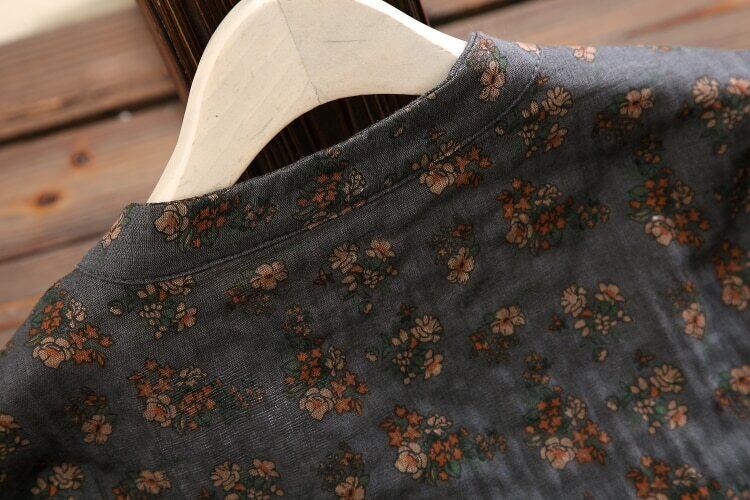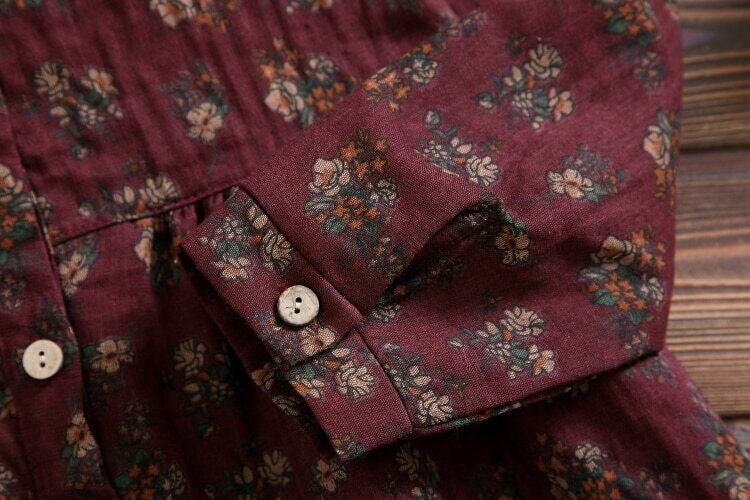 送料無料୨♥୧ オータムスプリングレディースルーズドレス スタンドカラーカラーフローラルプリントバギーレッドダークグレーヴィンテージ コットン 大人ガーリー スウィート キュート カジュアル 春物 秋物 花柄 ビンテージ AOS83152370611