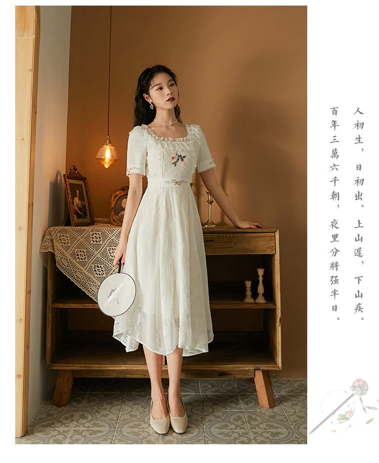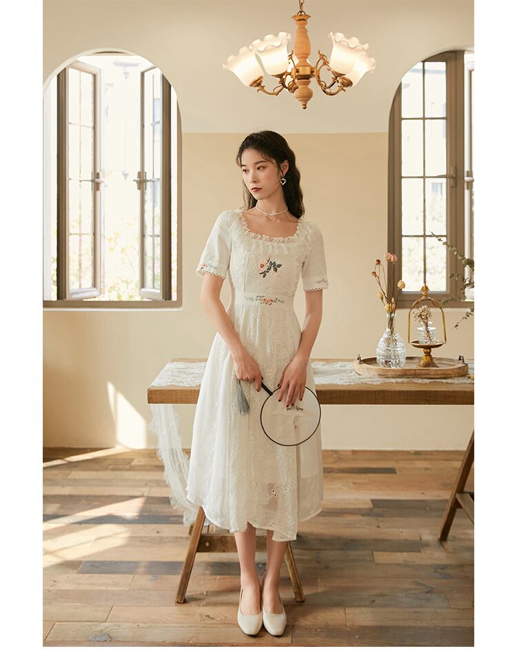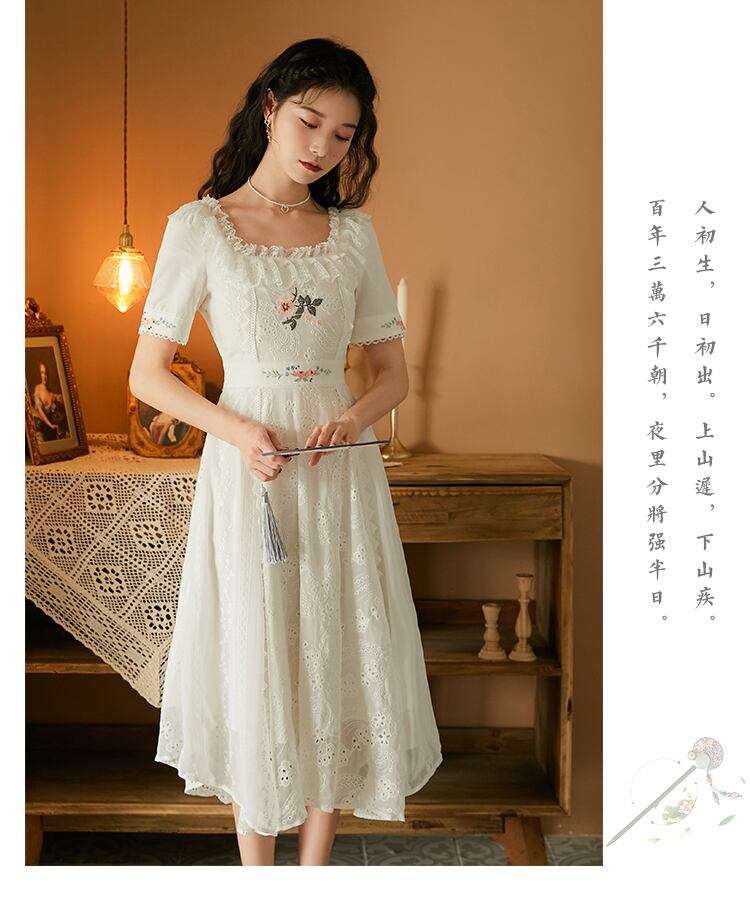 送料無料୨♥୧ サマーレディースホワイトロングドレス レースフリルフローラル刺繍 ラッフル 夏物 花柄 AOS97133914085