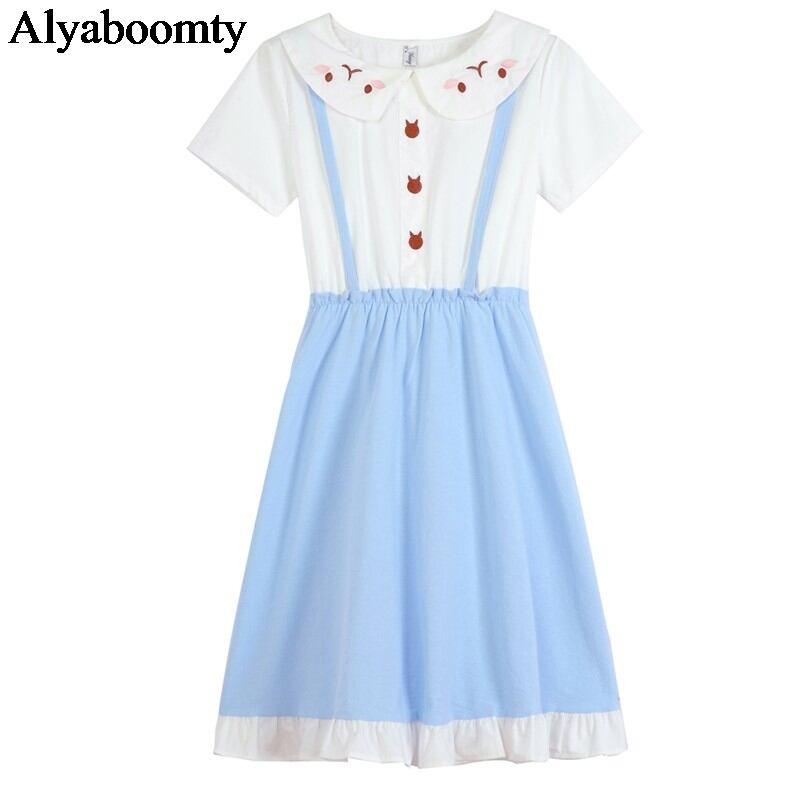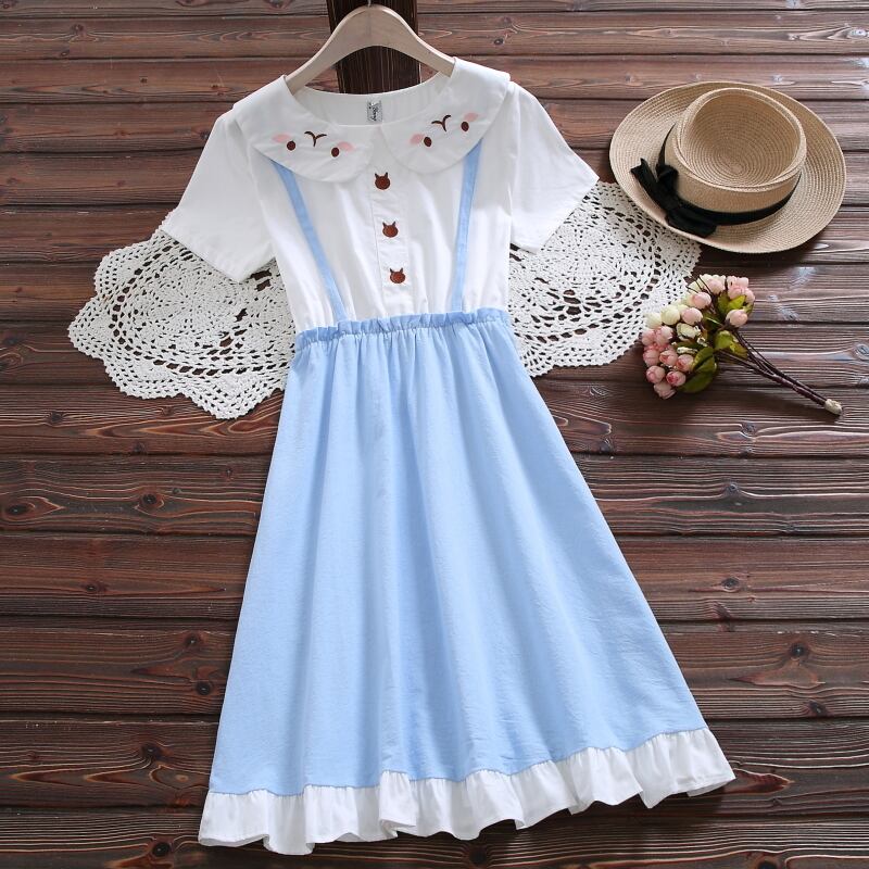 送料無料୨♥୧ スタイルサマーレディースドレス カラー刺繍ブルーフリルドレス ワンピース ピンク ラッフル 大人ガーリー スウィート キュート カジュアル 夏物 AOS58684784960