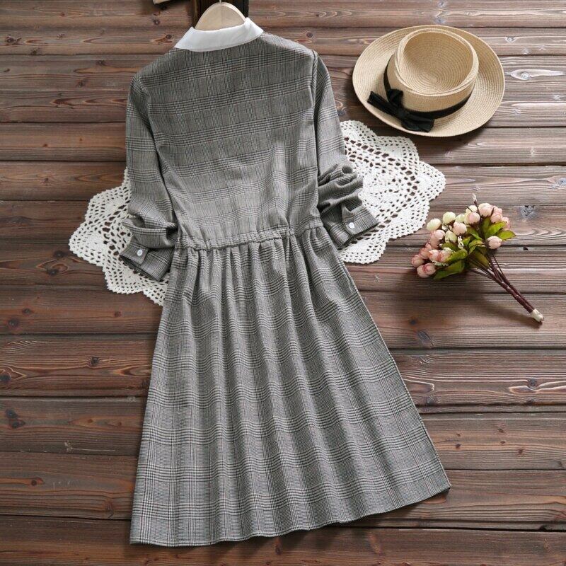 送料無料୨♥୧ スプリングレディースヴィンテージ格子柄ドレス カラー刺繍長袖スリーブドレス ワンピース ロング 大人ガーリー スウィート キュート カジュアル 春物 ビンテージ AOS54239121687