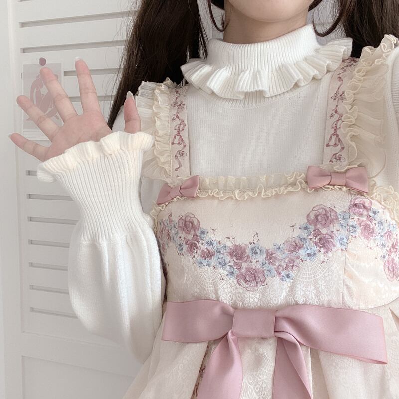 送料無料୨♥୧ スタイルオータムウィンターレディースセーター ソリッド ニットプルオーバー スリーブフリルトップス ラッフル 大人ガーリー スウィート キュート カジュアル 秋物 冬物 ソリッドカラー AOS95817032124
