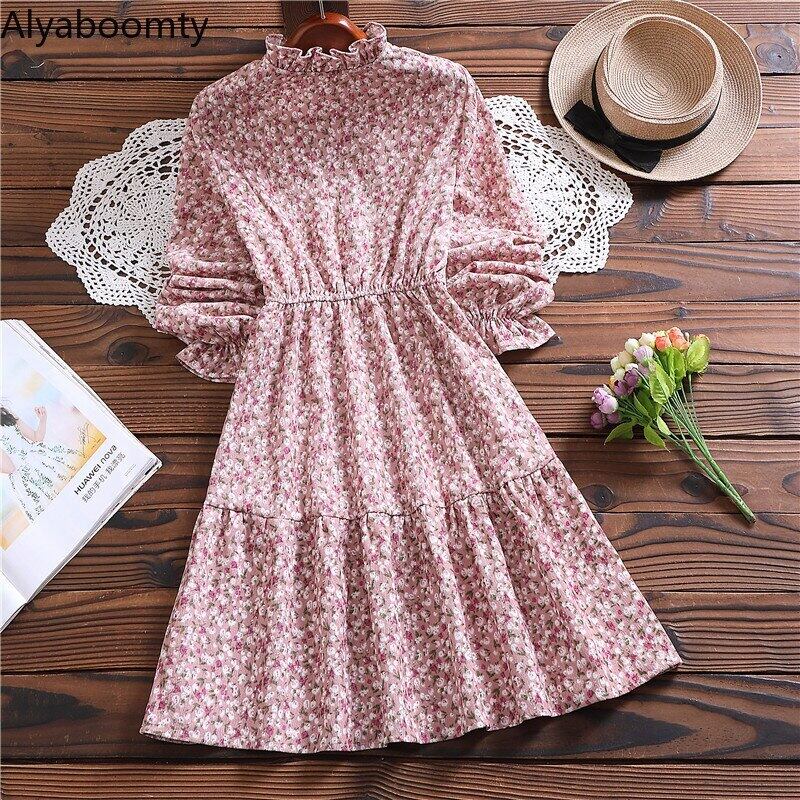 送料無料୨♥୧ スプリングオータムレディースミニドレス カラーリボンフローラルプリントスリーブコーデュロイショート ピンク 大人ガーリー スウィート キュート カジュアル 春物 秋物 花柄 AOS49531542431