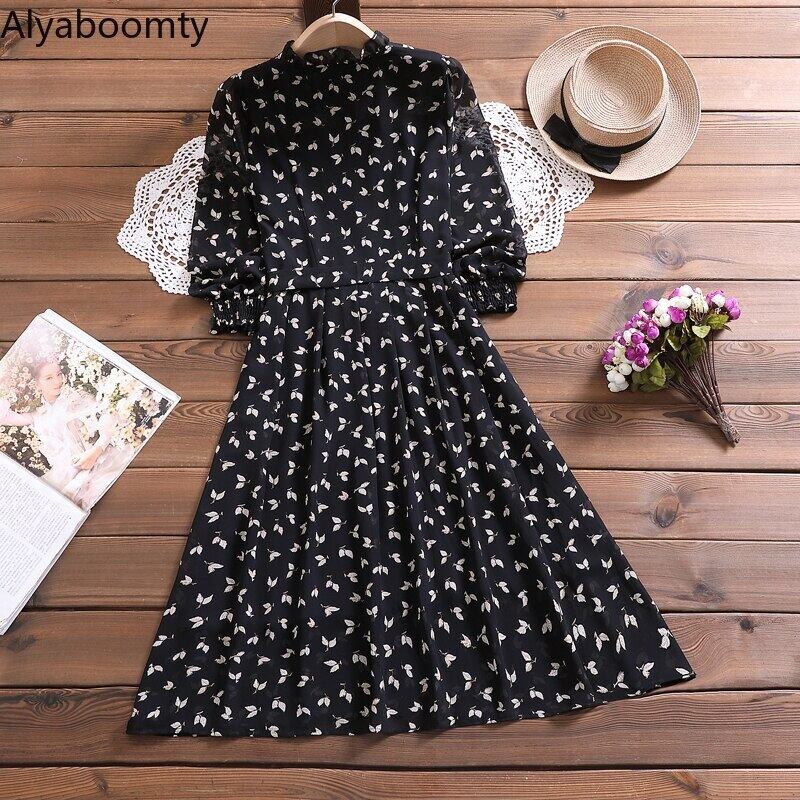 送料無料୨♥୧ スプリングオータムレディースブラックドレス カラープリント柄ベルト シフォンヴィンテージロングドレス ワンピース 春物 秋物 ハーネス ビンテージ AOS62466680651