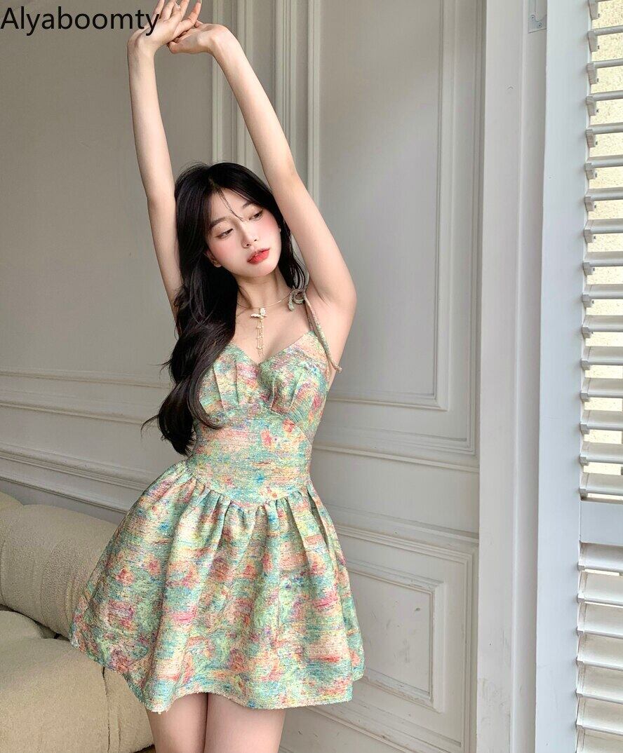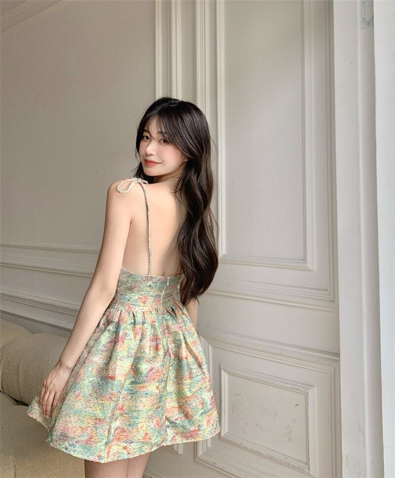送料無料୨♥୧ サマーレディースミニドレス プリント柄バックレスジッパーヴィンテージショート 夏物 ビンテージ AOS91022542730