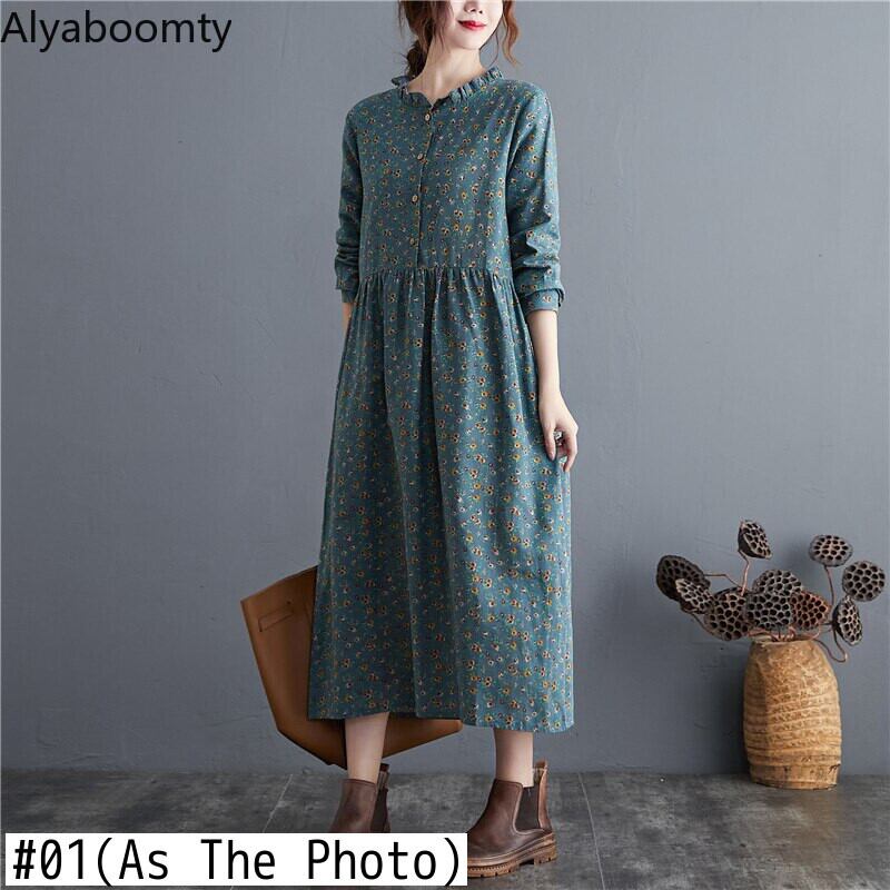 送料無料୨♥୧ オータムレディースロングドレス カラーフローラルプリント柄バギーヴィンテージ コットン 大人ガーリー スウィート キュート カジュアル 秋物 花柄 ビンテージ AOS29994986033