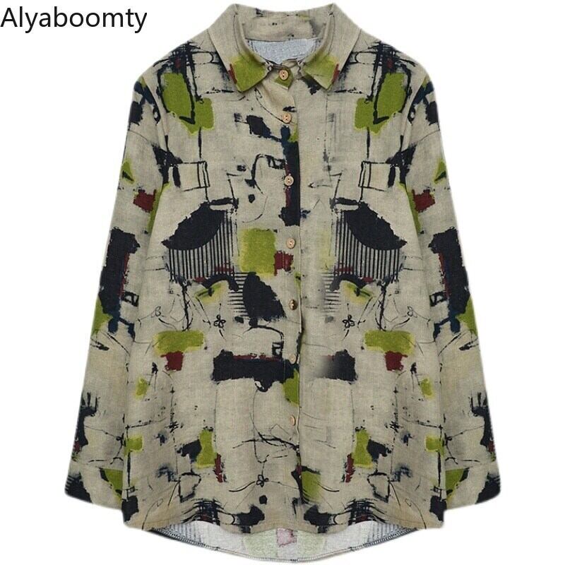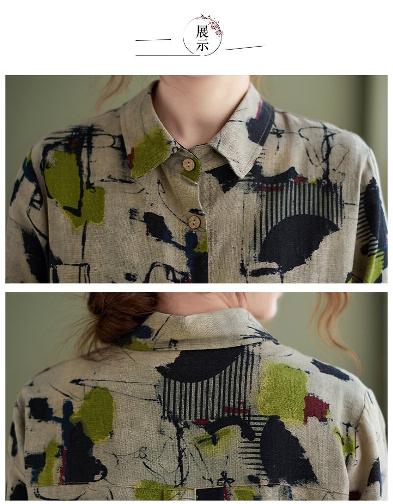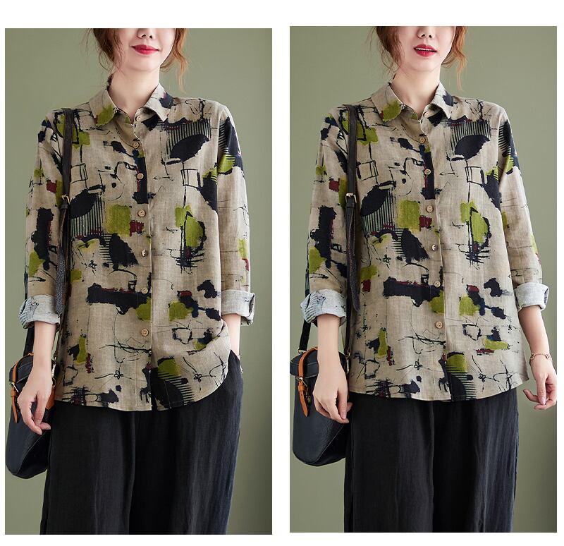 送料無料୨♥୧ オータムスプリングレディースヴィンテージブラウス 断るカラープリントコントラスト特大ブルサコットンシャツ AOS14605664841