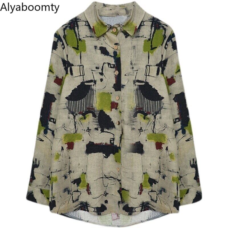 送料無料୨♥୧ オータムスプリングレディースヴィンテージブラウス カラープリントシャツ コットン 春物 秋物 ビンテージ AOS61759978891