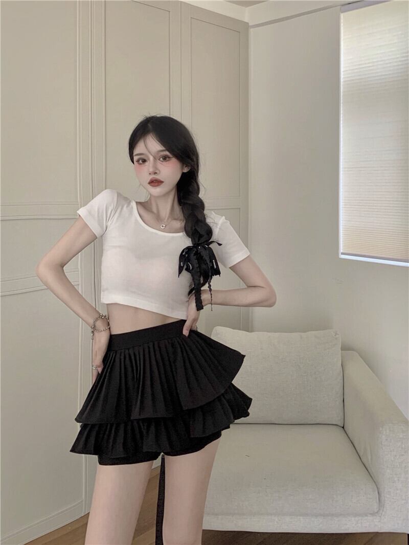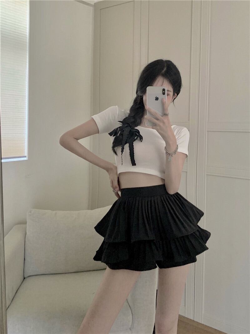 送料無料୨♥୧ ese原宿サマーレディースストリートウェアショーツ ウェストブラックホワイトピンクフリル甘いスカート AOS62415926451