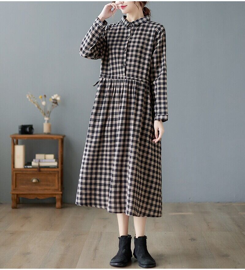 送料無料୨♥୧ オータムスプリングレディース特大ロングドレス 断るカラーレースアップヴィンテージスタンダードコットンルーズドレス ワンピース AOS36092946124