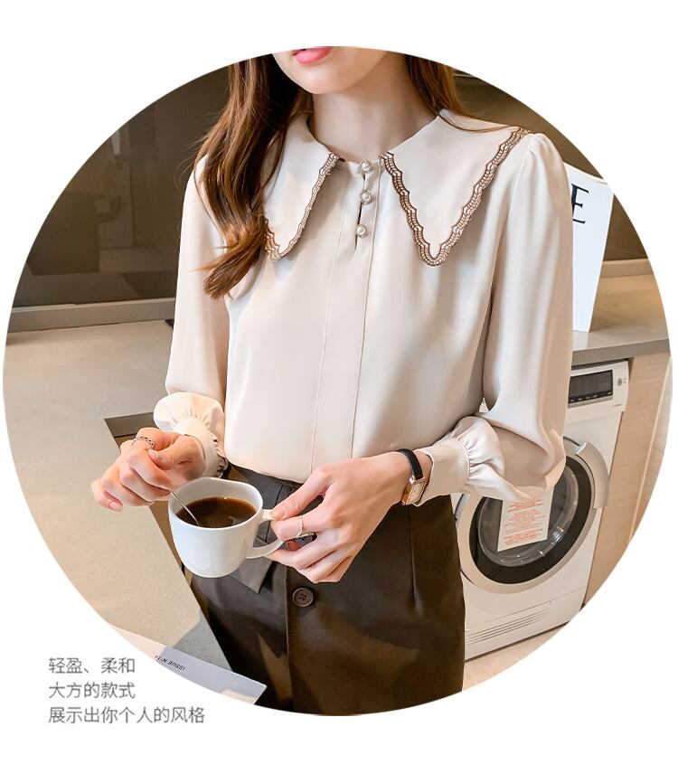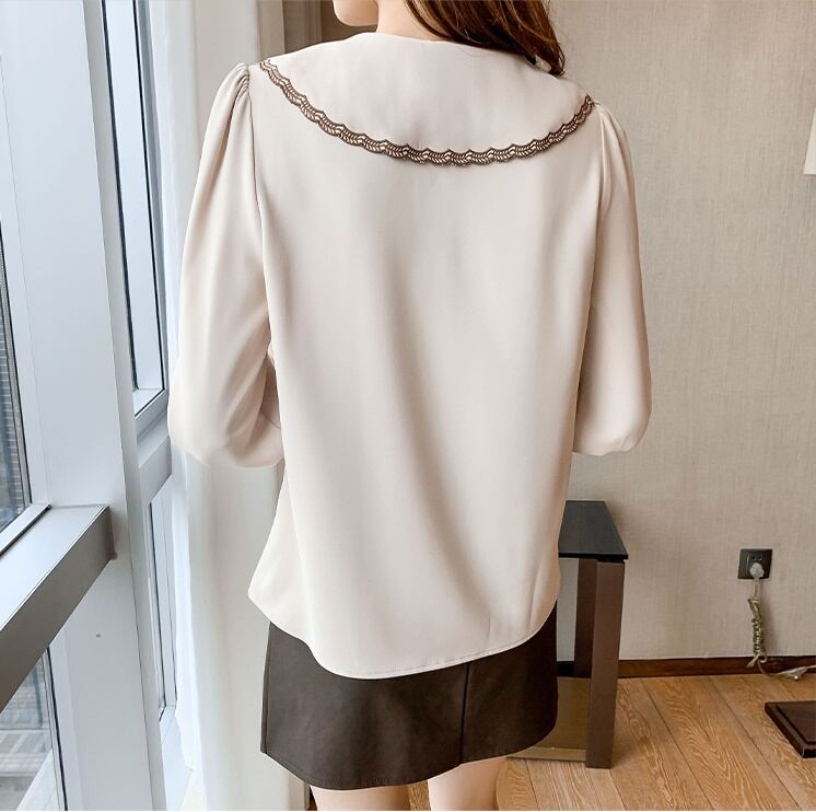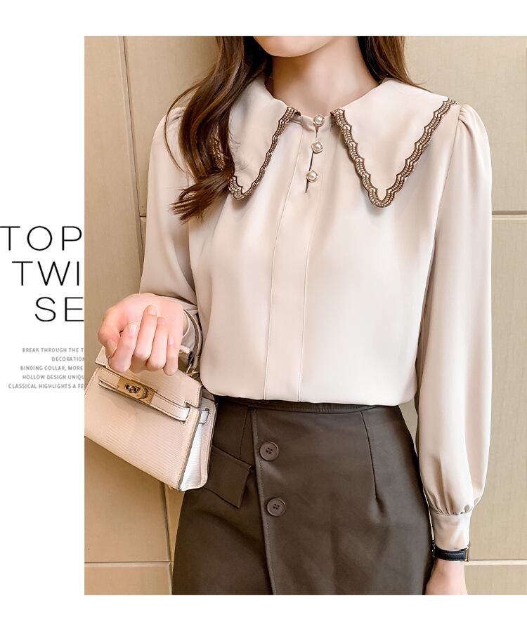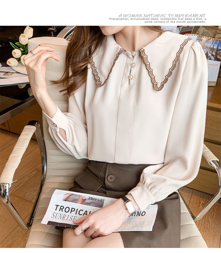 送料無料୨♥୧ スプリングオータムレディースブラウス カラー長袖スリーブシフォンシャツ ロング 春物 秋物 会社 学校 通勤や通学にも AOS86068936855