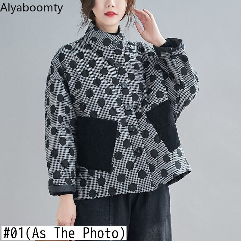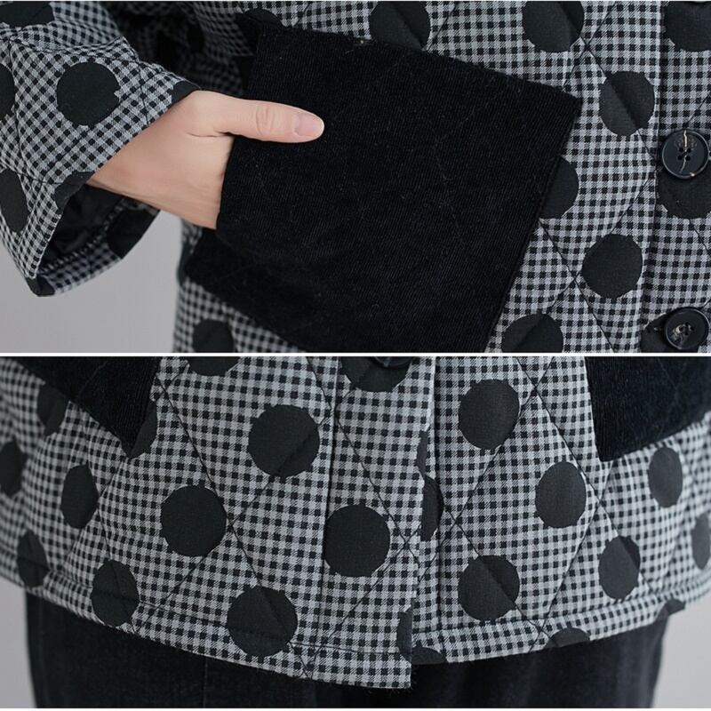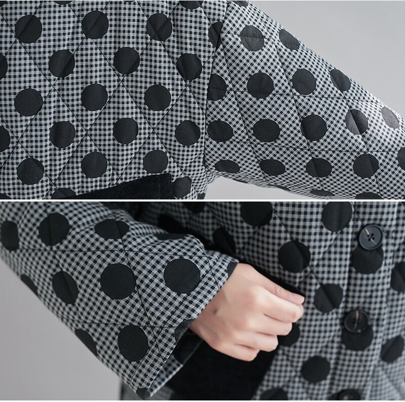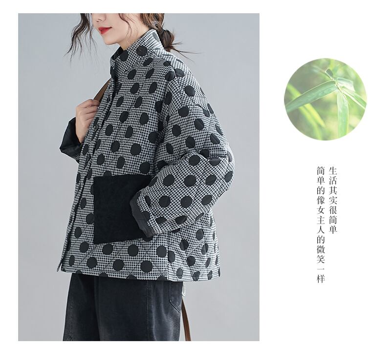送料無料୨♥୧ オータムウィンター特大レディースコート スタンドカラーカラー水玉ルーズ厚くするヴィンテージレディショートアウター AOS16485023487