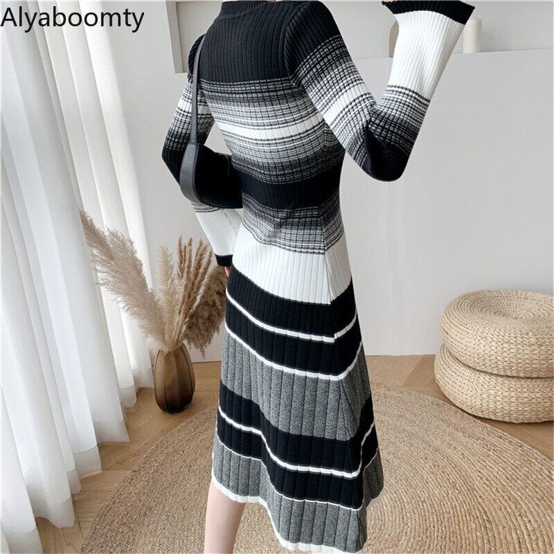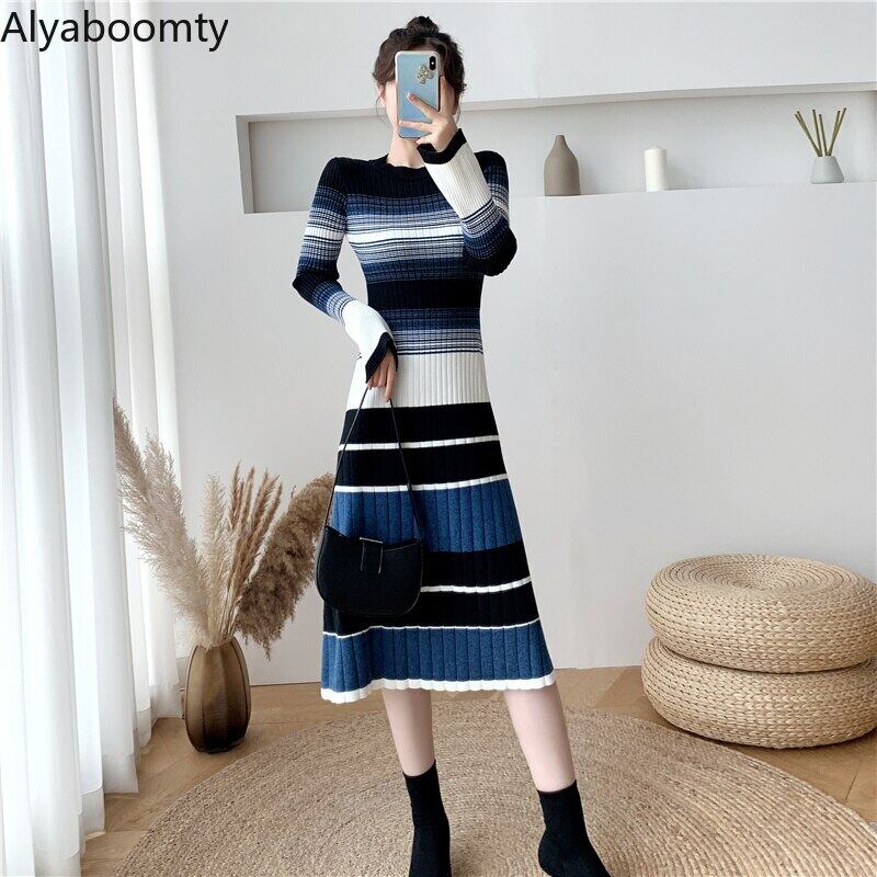 送料無料୨♥୧ オータムウィンターレディースニット ドレス カラーストライプセーター 秋物 冬物 AOS22782943131