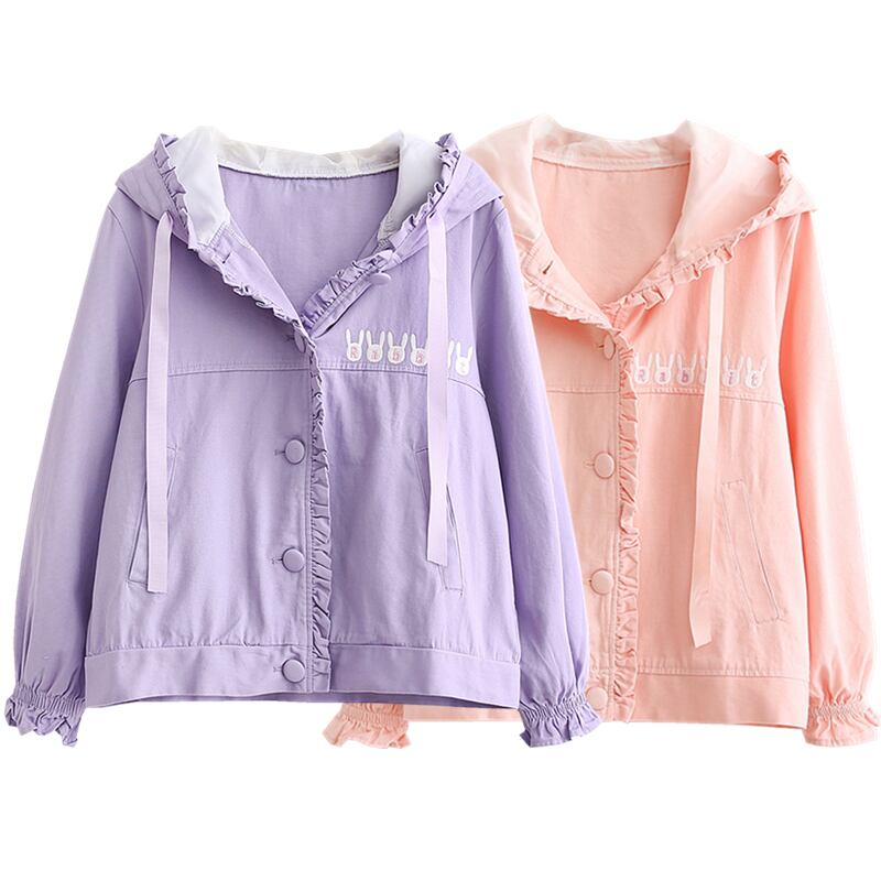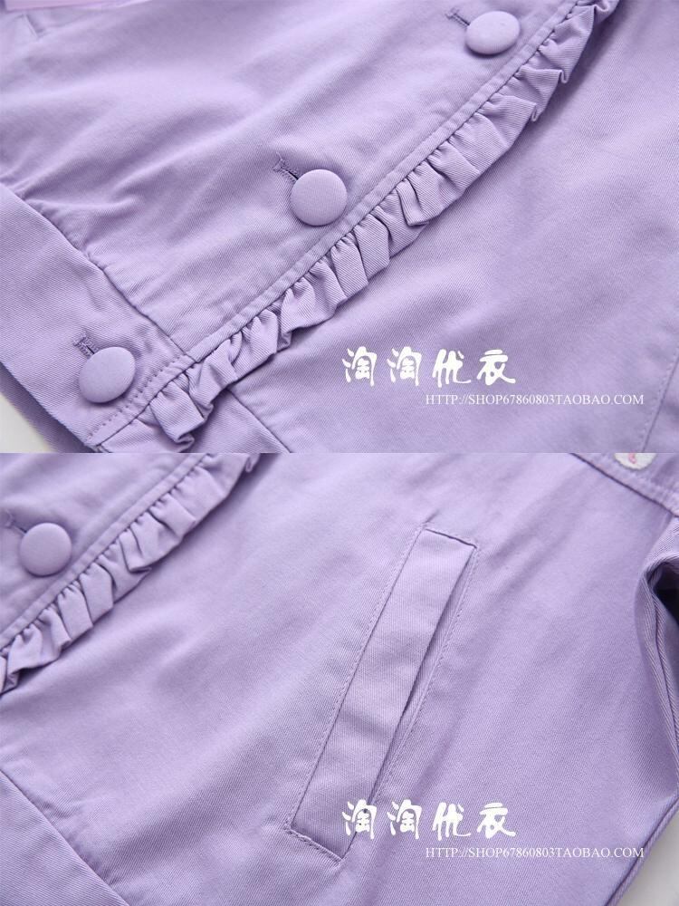 送料無料୨♥୧ スタイルスプリングオータムレディースジャケット フード刺繍コート アウター ピンク コットン 大人ガーリー スウィート キュート カジュアル 春物 秋物 パープル AOS88216991046