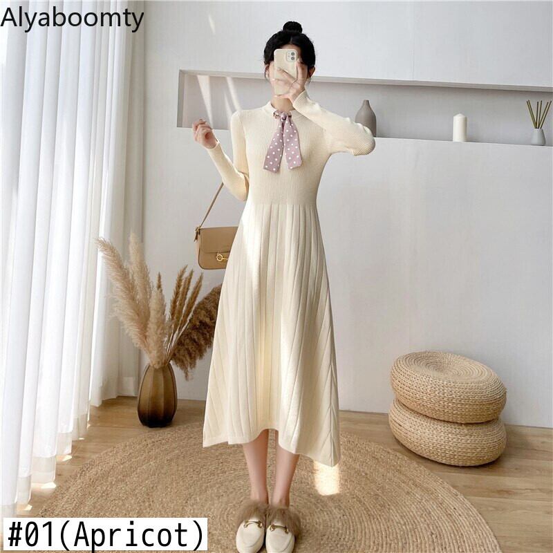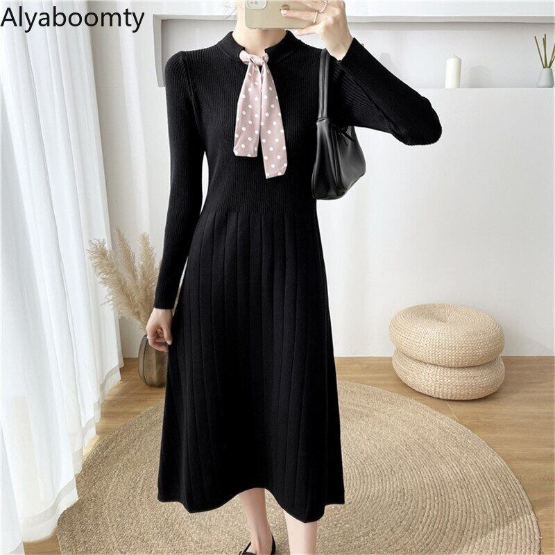送料無料୨♥୧ ウィンターレディースニットAラインドレス ブラックニット ロングリボンソリッド セーター 冬物 ソリッドカラー AOS30418452394