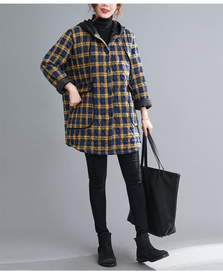 送料無料୨♥୧ オータムウィンタールーズコート フードイエローレッド格子柄ジャケット ヴィンテージアウター 秋物 冬物 ビンテージ AOS3337654308