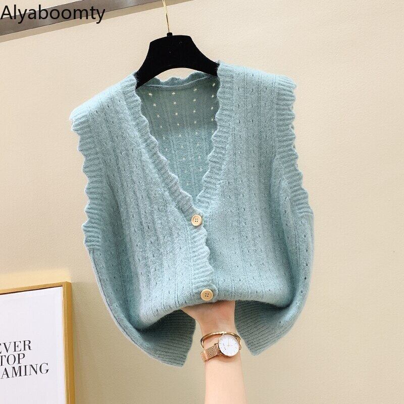送料無料୨♥୧ キャンディーカラーレディースオータムウィンターslevelessセーター Vネックピンクベージュ紫のニットベスト可愛いレディストリートウェア AOS27969958197