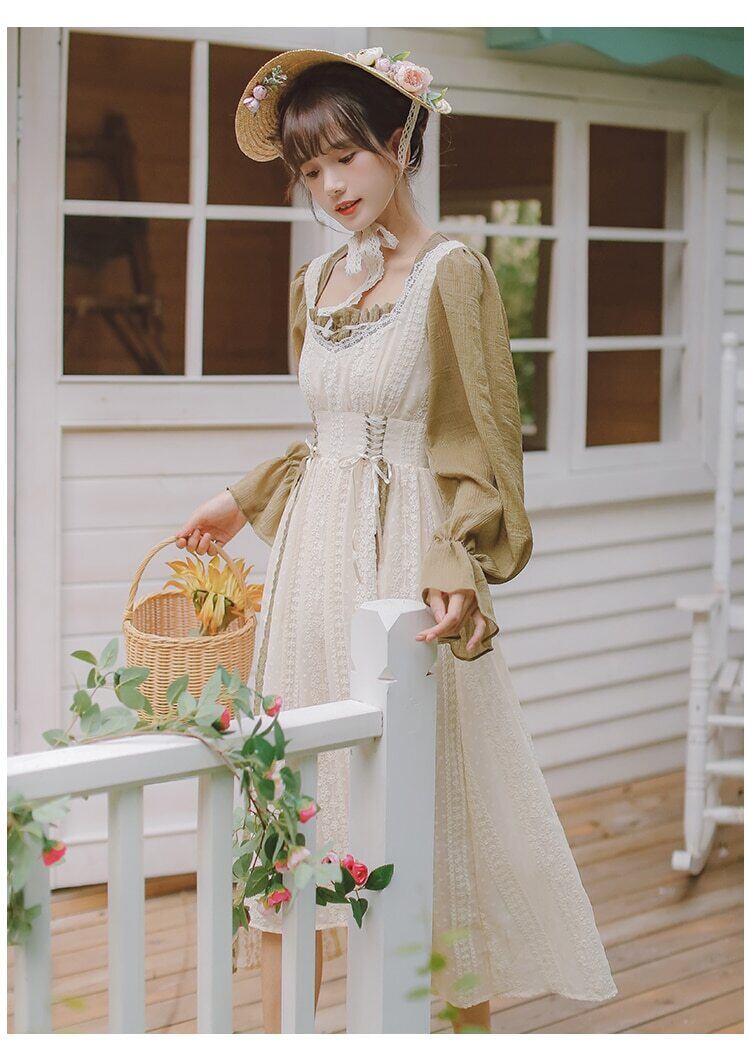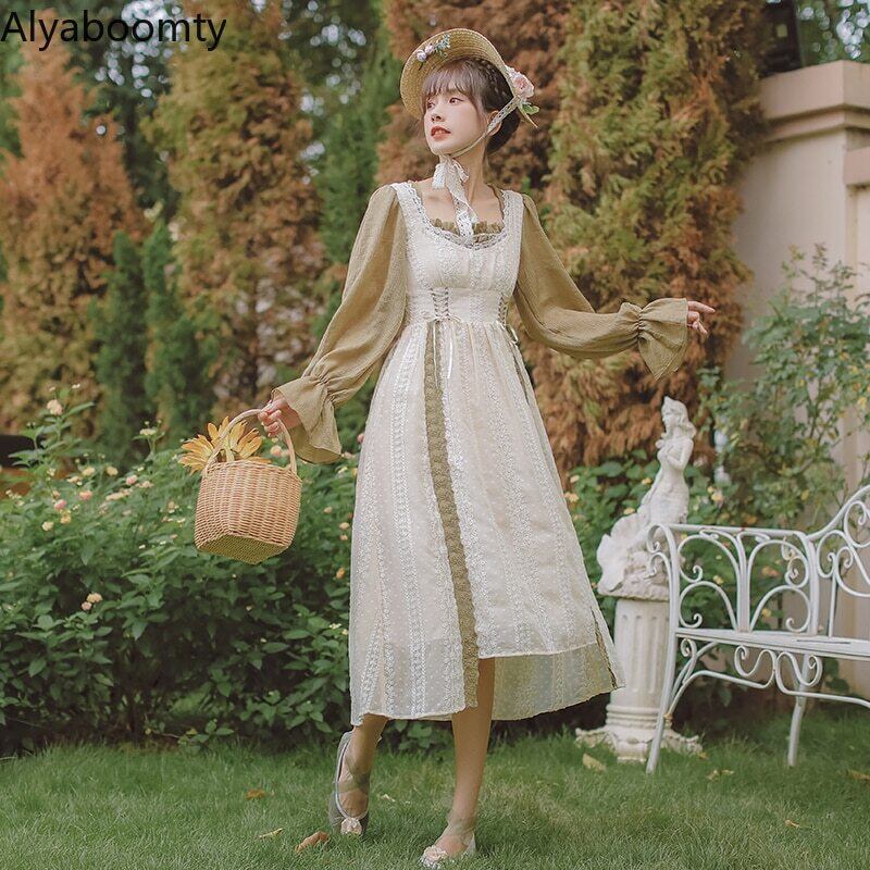送料無料୨♥୧ 森スプリング秋レディースミディスタイリッシュドレス パッチワークロマンチックパーティーバンド草原シック妖精 AOS19313627560