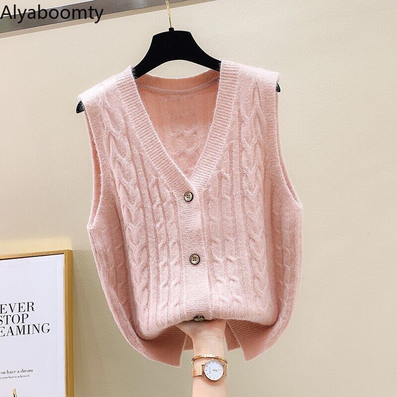 送料無料୨♥୧ スタイルスプリングオータムレディースノースリーブセーター Vネックベージュブルーピンクニットベスト甘い全試合シンプル AOS43223513455